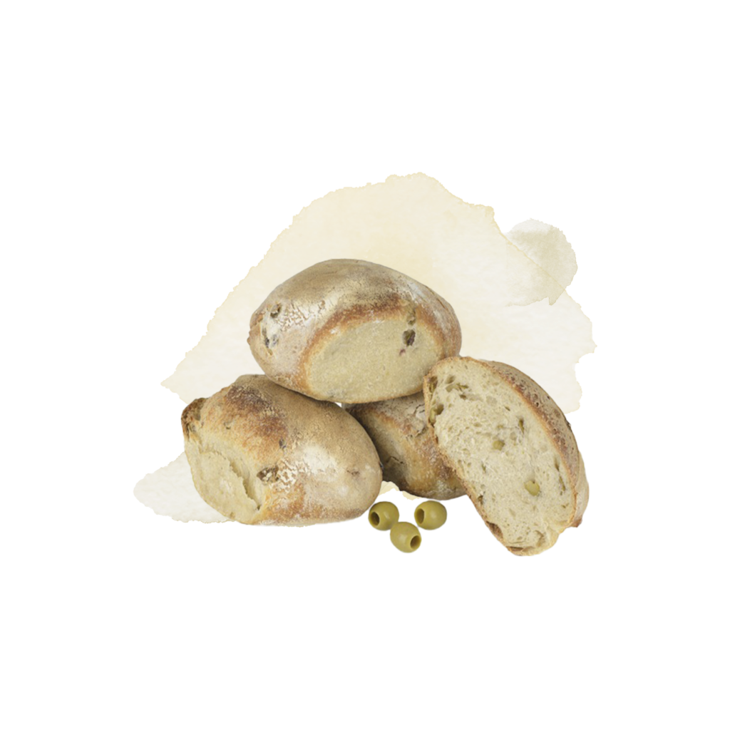Questo pane artigianale inizia con una base di impasto morbido e soffice, lavorato con maestria per garantire una consistenza irresistibilmente leggera. Le olive sono disseminate in tutto l'impasto, regalando ad ogni fetta una generosa razione di salinità e un'esplosione di gusto.